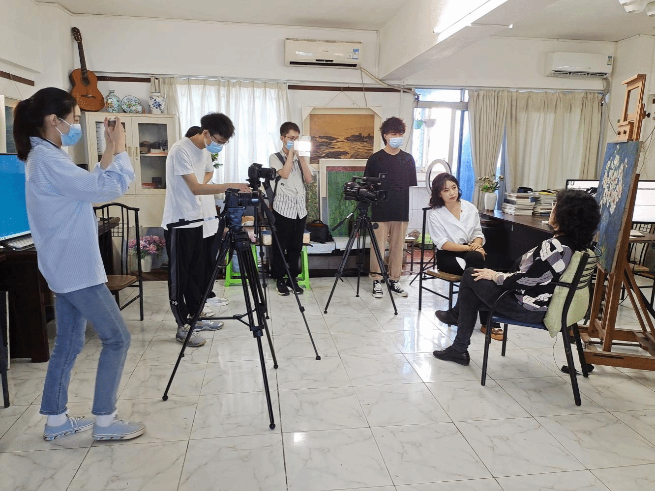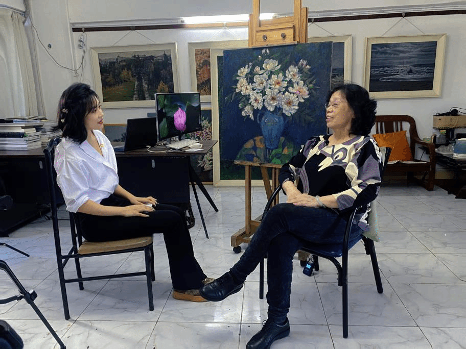 5月18日下午,我校老校友、老党员、国家一级美术师丁孟芳女士在其工作室内接受了“共话百年奋斗,争做时代新人”为主题的采访。