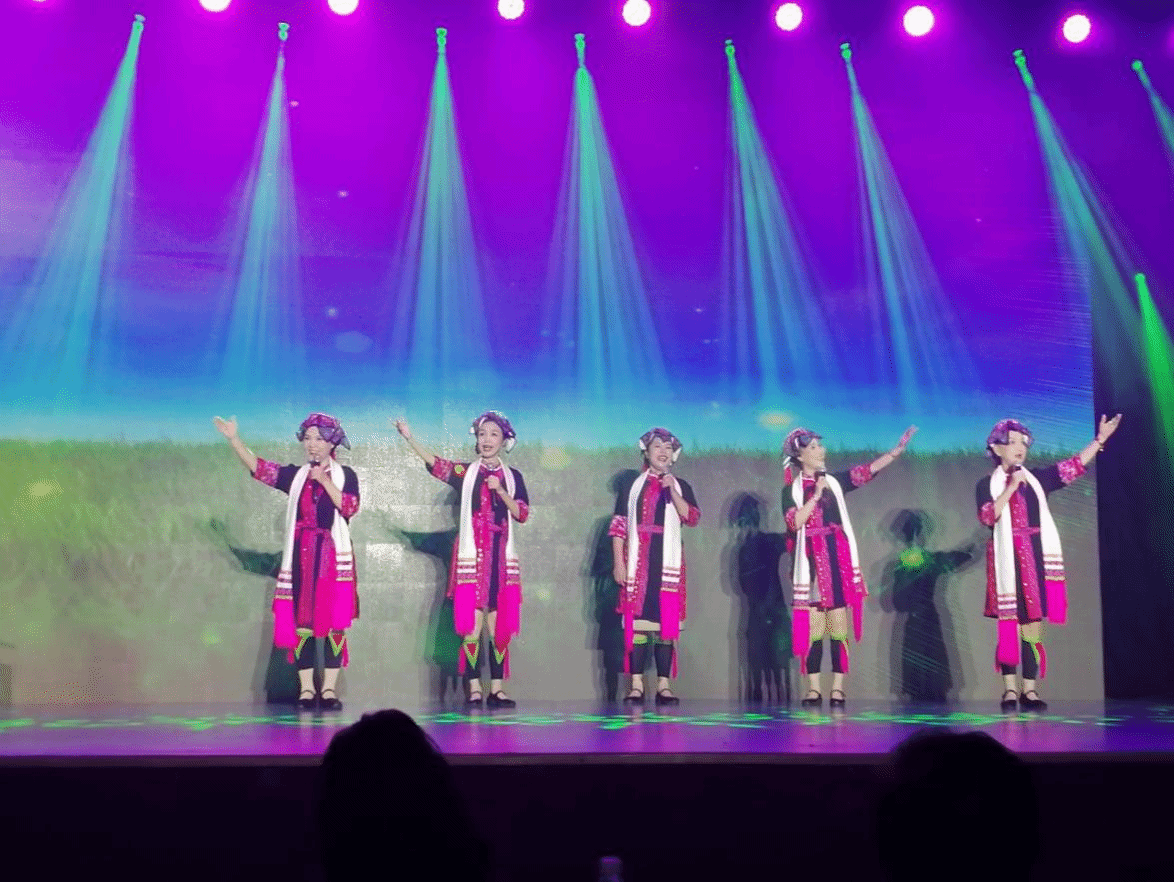 大赛在《绣红旗》优美的歌声中拉开了帷幕。在主持人的穿插报送下,节目有序进行,精彩纷呈、内容丰富,具有鲜明地域特色的歌曲节目如《打蝗虫》《毛主席来过五指山》,轮椅上的歌声等激昂奋进,感染着台下的观众,气氛热烈雄壮。