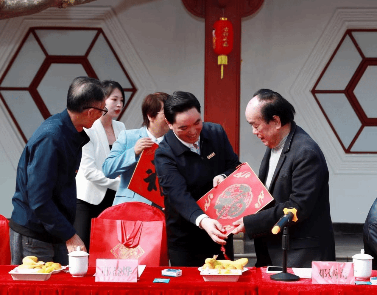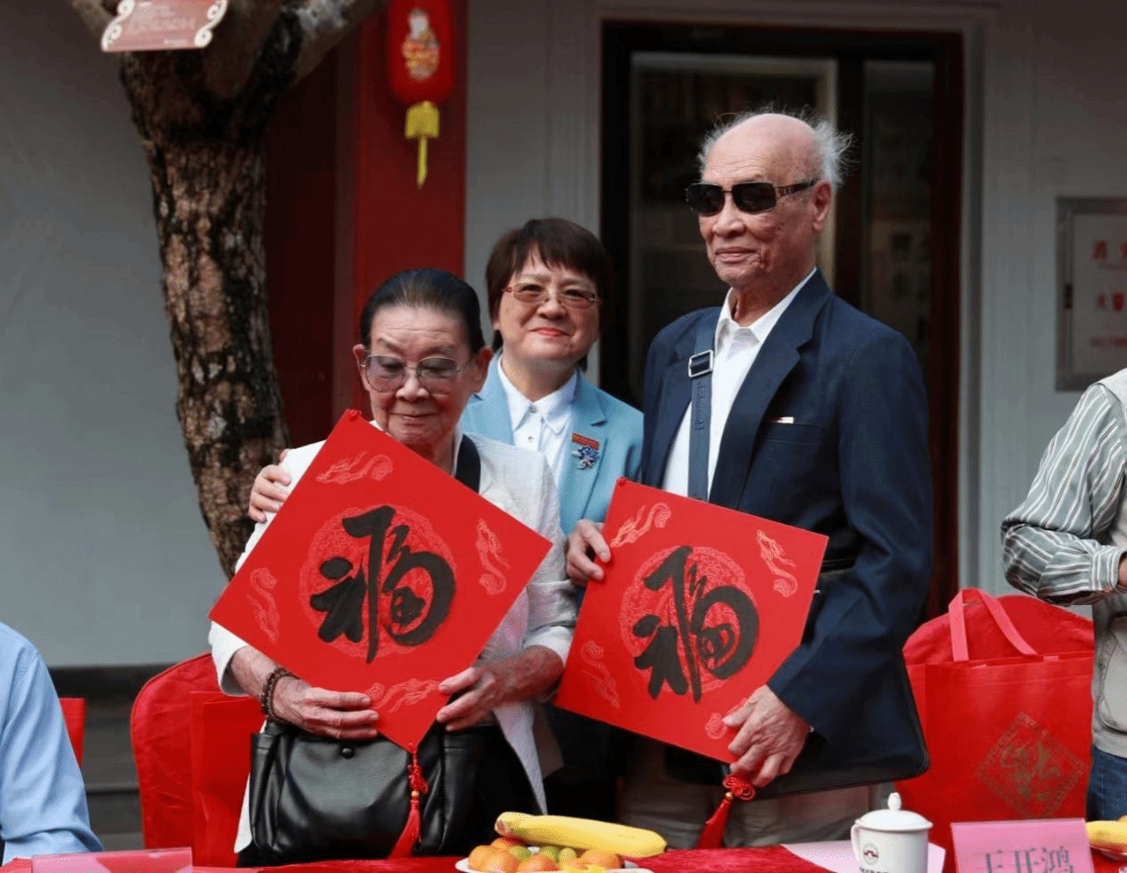 当天上午,琼台书院内大红灯笼高高挂起,在阳光的映衬下更显安宁祥和,与古老的建筑交相辉映,处处洋溢着春节的喜庆氛围,参会人员围坐在书院中庭的古树下,共忆奋斗历程、共享发展喜悦、共话美好蓝图。吕治国和刘湘洪共同为新退休干部颁发荣休证书和纪念品,校党委班子成员为离退休老同志赠送新年福字。