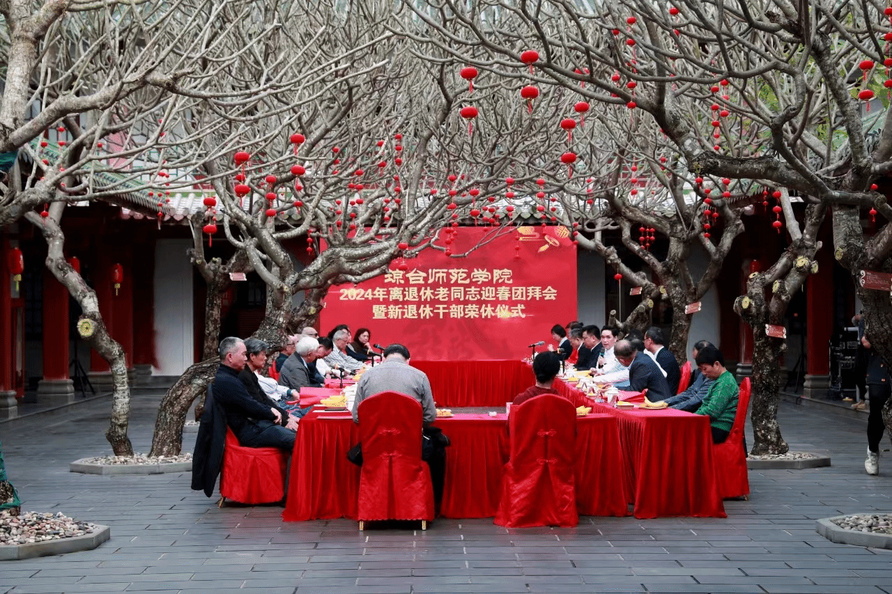 琼台福地送春福,师范院里话尊师。1月31日,甲辰龙年新春到来之际,我校在琼台书院博物馆举办2024年离退休老同志迎春团拜会暨新退休干部荣休仪式。校党委书记吕治国出席并讲话。校党委副书记、校长刘湘洪,党委委员、副校长王华,党委委员、组织部部长陈拥军,党委委员曾德锦出席活动。王华主持活动。