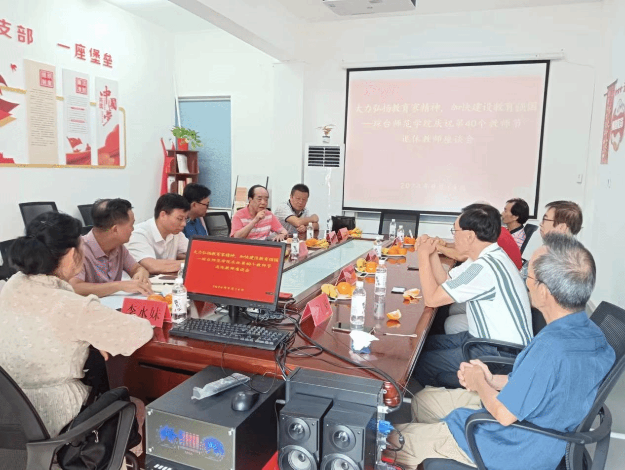 9月14日,老干部服务中心会议室暖意融融,学校副校长林琛、组织部部长陈拥军及10名老教师代表欢聚一堂,共同欢庆第40个教师节。
